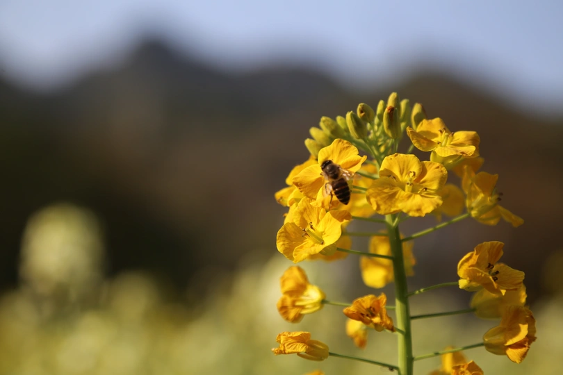 疫情过后的一天,和朋友一起去看油菜花,看到勤劳的蜜蜂已经开始工作啦~