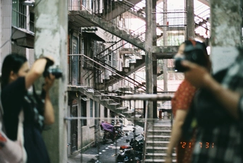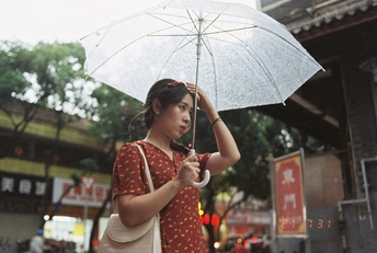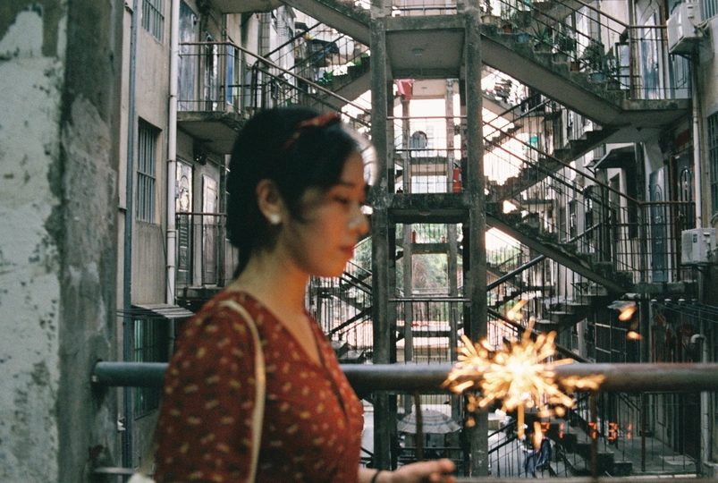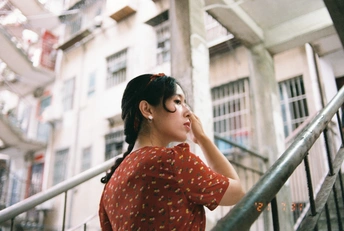 尼康F80+永诺35F2 富士Xtra800 出片地:南宁市唐山路唐人文化园 美目碧长眉翠浅,消魂正值回头看。