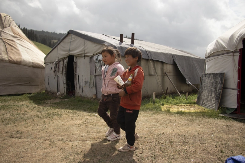 我们去海西草场烧烤,孩子们都趁过来好奇的围着我们看。我们给他们饮料烧烤以后他们脸上洋溢着暖人的笑容。