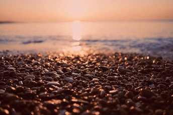 清晨的海边,沙滩上的光线营造非常温馨的感觉。