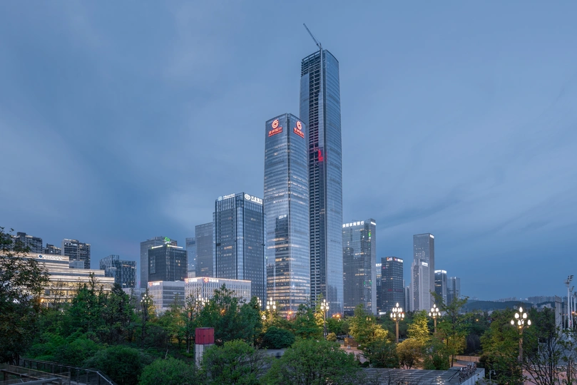 拍摄于贵州贵阳金融城,图中未完工项目为贵阳市目前最高的摩天大楼ZTF大厦,401米