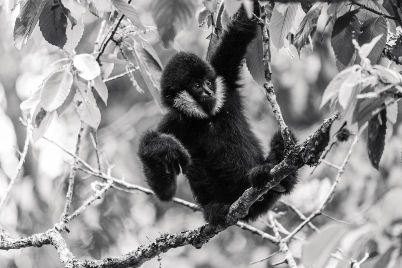 白颊长臂猿(Nomascus leucogenys)是云南省境内分布的灵长类种类之一,目前列入《世界自然保护联盟》(IUCN)2008年灵长类红色名录——极危(CR),《中国国家重点保护野生动物名录》一级。是西双版纳国家级自然保护区勐腊子保护区的重要保护对象。