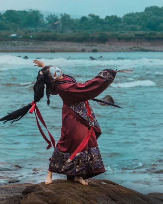 岸边一赤脚女仙在练东方剑,对我这个行来说好像有模有样,拍一张记录一下。