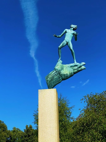 单独的街头雕塑照片有些平淡,用“双重曝光”将另一张照片的“一缕白烟”添加上去,增加一些“戏剧感”和趣味性。