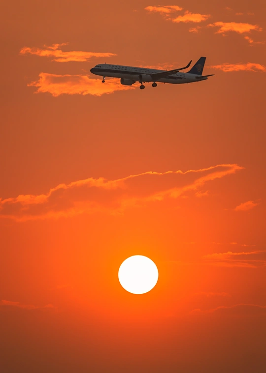 【雾霾福利】 下午六点,离日落还有半小时,太阳还挂在高处,但雾霾使得太阳光比变得没那么大,支起相机等待飞机滑过的瞬间。 @米拍
