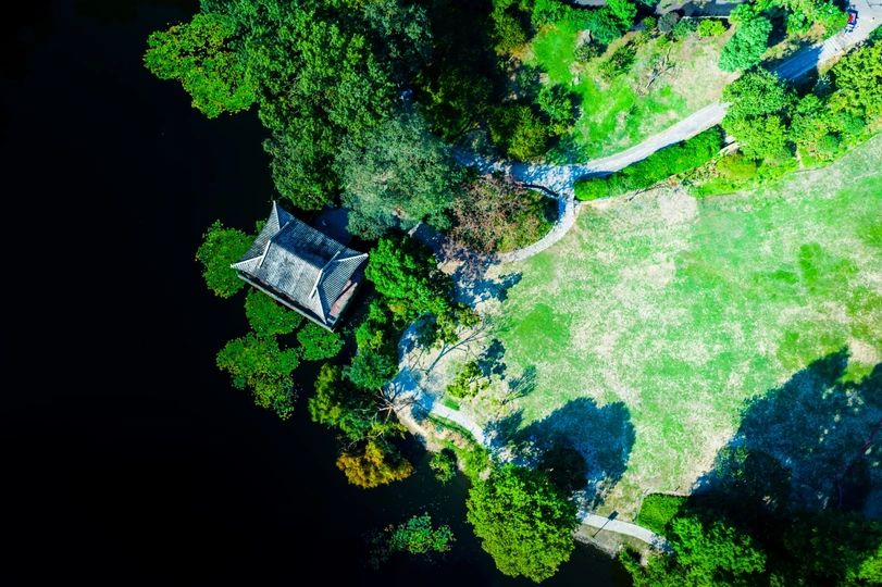 流徽榭又名水榭亭,是中山陵园的一处附属建筑,水榭亭长14米、宽10米。顶铺乳白色琉璃瓦,红色立柱,三面临水、碧波荡漾,倒映水榭,别有情趣。周围遍植树木,水中栽有大片的睡莲。是中山陵园的一处优美风景点。