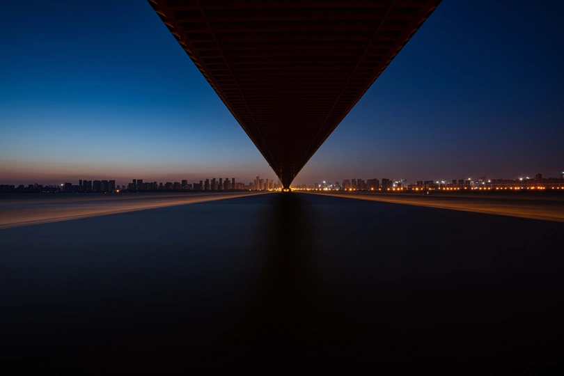黎明时分的杨泗港长江大桥,少了喧嚣的人群和过往的船只,可以静静享受微风拂面,聆听江水拍打岸边的声响。 拍摄设置:153″长曝光,50ISO,F11。