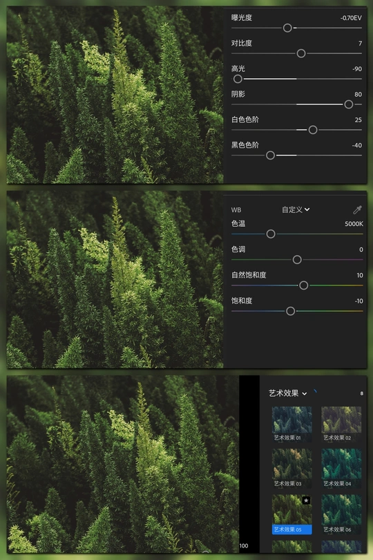 Hello,又和大家见面了,今天给大家带来一款自制非常好用的调色分享:质感墨绿万能预设,这款色调特别适合绿植繁多的场景,如果你出门的时候拍了很多清新植物的照片,想调出高级墨绿质感色调,那就来试试这款调色吧!它能让你的照片焕然一新。 可适用于手机版LR和电脑版LR。 可提供预设文件,有意的可以私聊我哦~