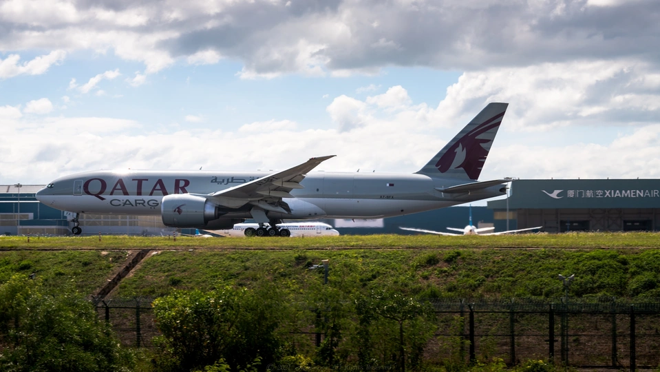 突如其来的疫情,急剧减少的航班! Sunday. 卡塔尔货运 QR8989 波音777-F A7-BFX 厦门(XMN)-多哈(DOH) 卡塔尔货运是厦门的常客,终于在白天拍到了[苦涩]。这颜色,这文字,总有一种外星文明的感觉。