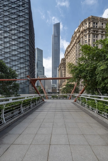 广州周大福金融中心,俗称广州东塔,总高度530米,与小蛮腰广州塔隔江相望。