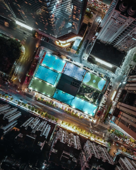 航拍视角看广州-石牌村楼顶球场
