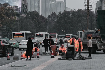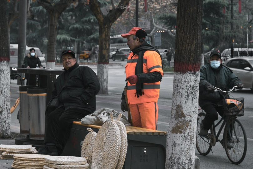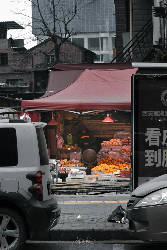 明亮的工服 鲜活的劳作, 动静间似乎能感受到他们忙碌中呼出白色雾气 堆积的水果,安心的等待被人挑选回家,朴实的生活也因此多滋多味