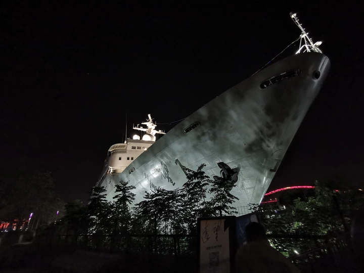 这个季节晚上最适合扫街,黄浦滨江一路拍过去,发现了这艘船舶远航1号,已经废弃变成了观光船。没带相机先手机打卡记录下。