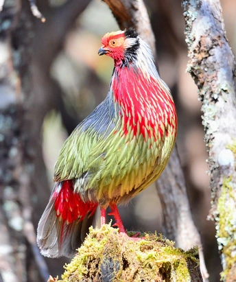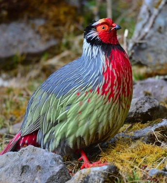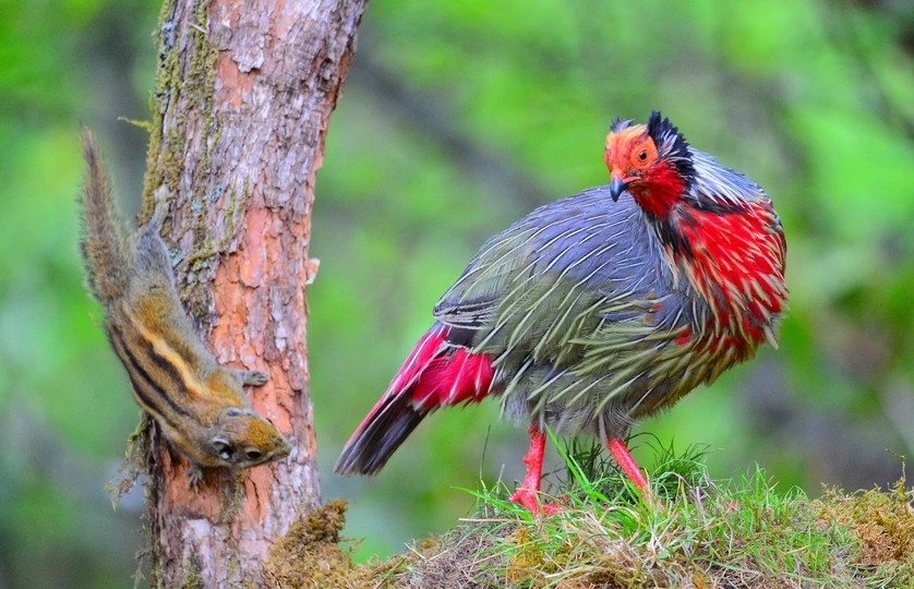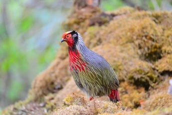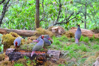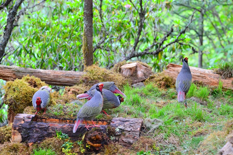 血雉隶属鸡形目雉科血雉属,别名血鸡、松花鸡、红脚鸡。是我国二级重点保护动物。丽江亚种比较常见的地方在丽江老君山九十九龙潭景区。血雉主要栖息于杜鹃灌丛中跟针叶林,混交林。雄鸟发出短促的si叫声,报警时咯咯的叫。在景区里面也能经常遇到这些小精灵,很多老师也会慕名而来,基本都能收获满满[拜拜]