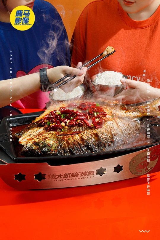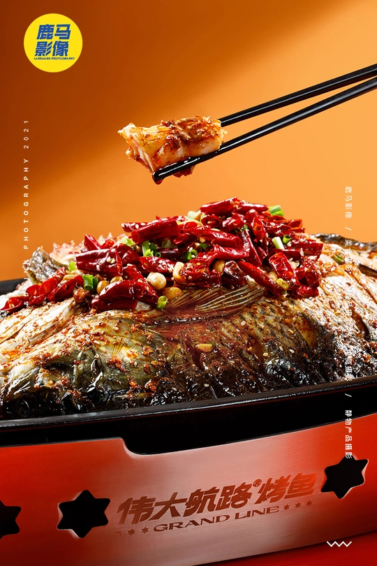 品牌:伟大航路 策划:鹿马创意 摄影:鹿马影像 伟大航路是火爆东三省的烤鱼连锁品牌 拥有40余家直营店 商场人气排名前三名 我们这次拍摄 将美食摄影拍摄技巧灵活运用 捕捉生鲜活鱼的动态 定格烤鱼烧烤的美味