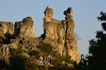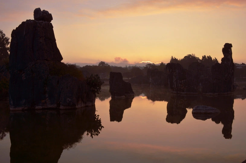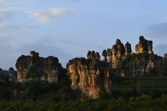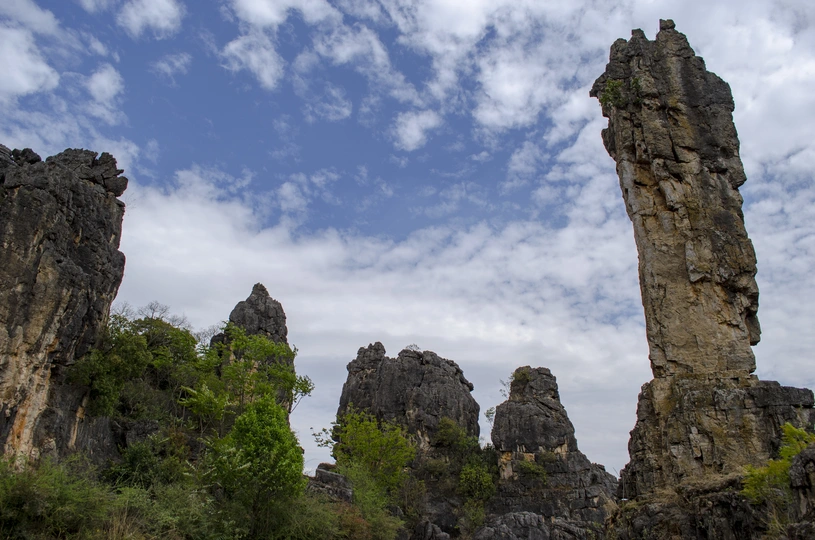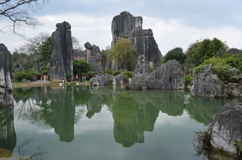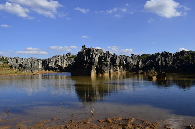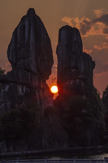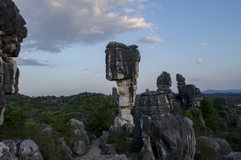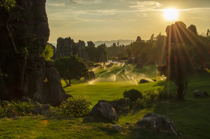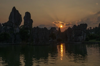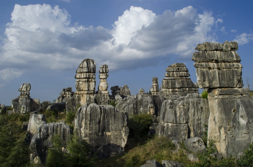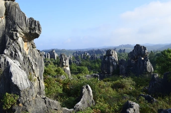 云南石林风景区被联合国文教科评为"世界地质公园","世界自然遗产"。位于云南省昆明市石林彝族自治县境内,属亚热带低纬度高原山地季风气候,冬无严寒,夏无酷暑,四季如春。约3亿年前,石林景区是一片汪洋泽国,经过漫长的地质演变,终于形成了极为珍贵的地质遗迹,涵盖了地球上众多的喀斯特地貌类型。