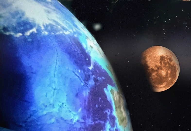 看多了站在地球上看月亮的照片,今天来一张宇宙里看月亮的照片