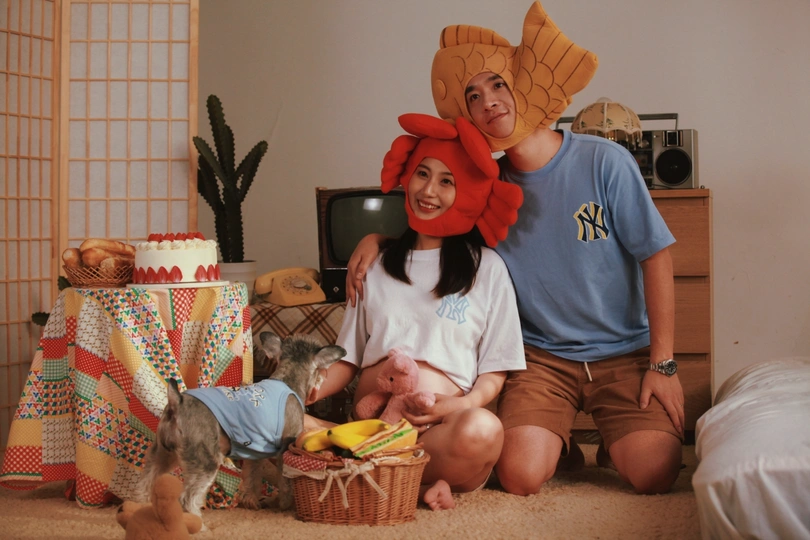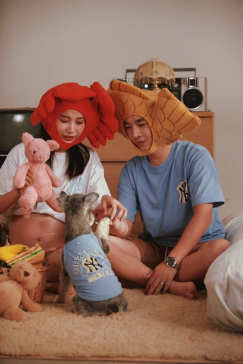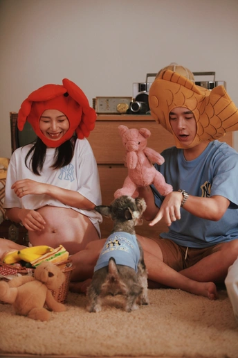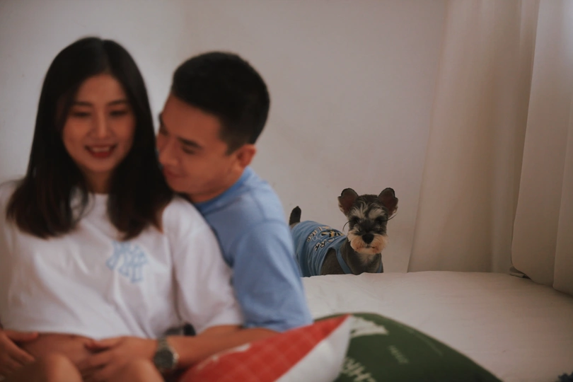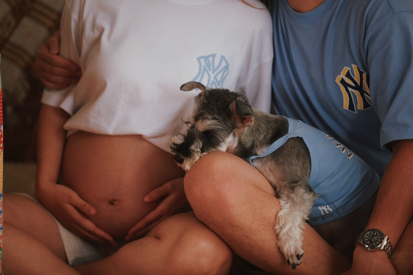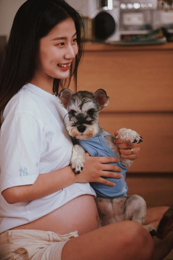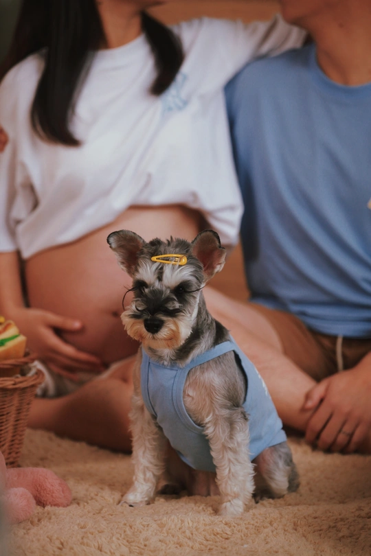 怀孕的夫妇养了一只可爱的雪纳瑞!