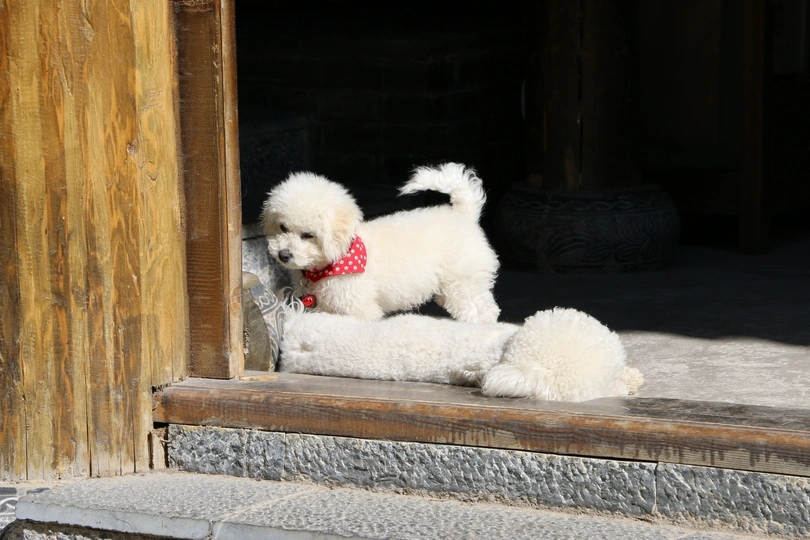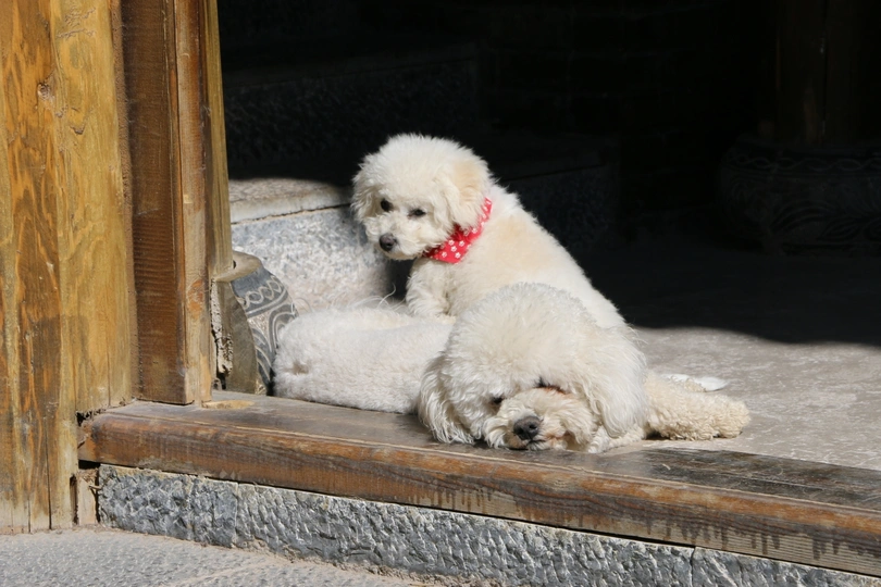 丽江古城的早晨,晒太阳的两只可爱小狗