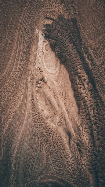 青海西部的沙漠, 从无人机的视角俯瞰,意外发现中有一群酷似鱼群化石的雅丹地貌,照片中的这条大鱼有着清晰的眼睛、鱼鳃和鱼尾,仿佛是远古时期汪洋大海中海水褪去后凝固的影像。