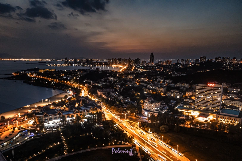 青岛汇泉广场位于文登路中段,占地13.43公顷。南面是大型音乐喷泉广场,1992年8月竣工开放。建有长100米、宽30米,国内最大的广场音乐喷泉,象征青岛建置100周年;36.5米高的三角玻璃钢雕塑,象征每年365天,天天向上。