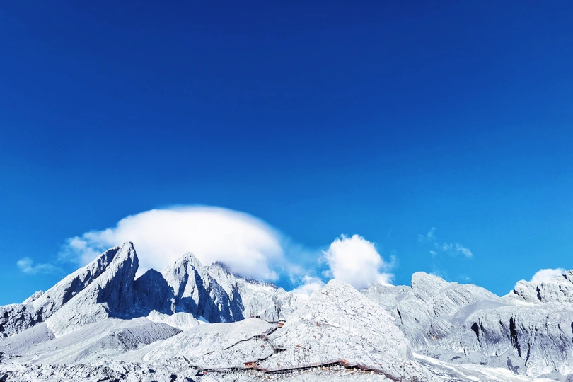 第一次爬雪山,竟意外遇到旗云景观,幸运之至! 拍摄地点:丽江玉龙雪山