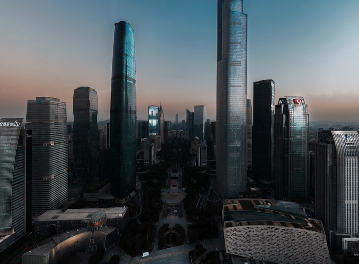 广州初晨阴天里ifc大显“身材”“颜值”。