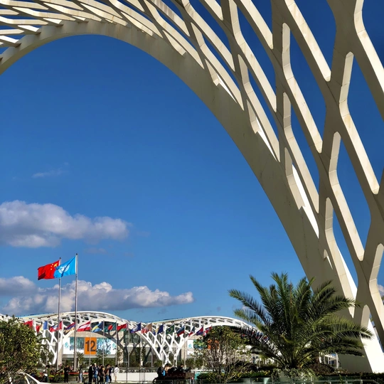 联合国《生物多样性公约》缔约方大会第十五次会议(UN CBD COP15)举办地昆明滇池国际会展中心,蓝天白云和晴空万里下的春城之邀