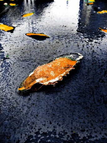 冬天寒潮天气结冰地面树叶