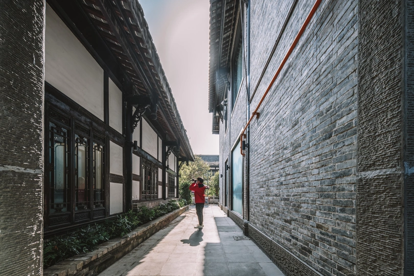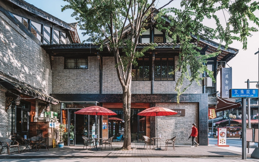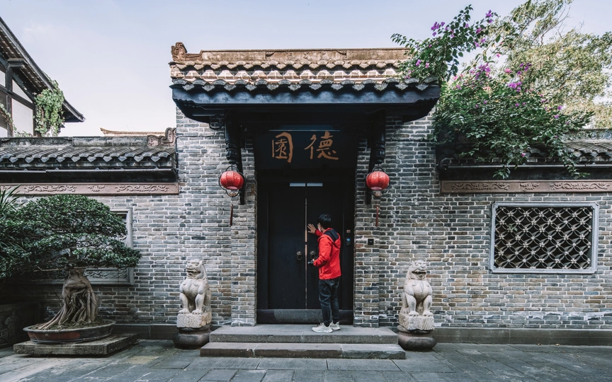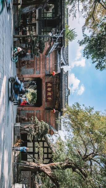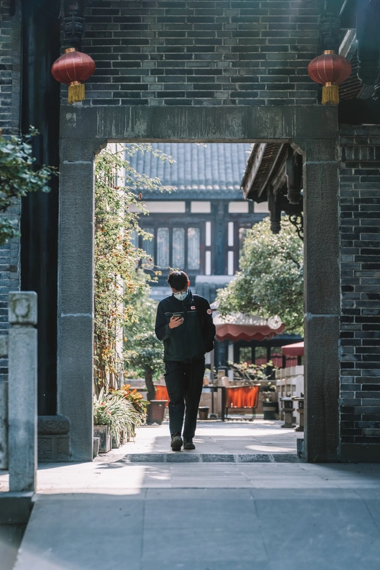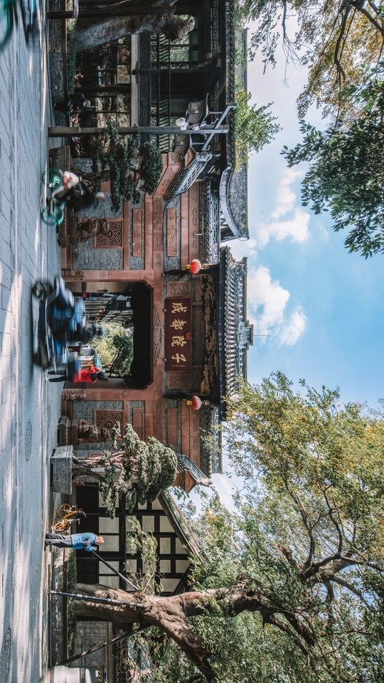 成都久违的太阳终于出来了,我驱车前往成都院子,太阳暖暖的,阳光撒院子里,到处充满了生气。😀 成都院子酒店,名字里有个酒店,但是里面世界不像一个酒店,更像是一个景点与隔壁的文殊院无缝衔接,于是拿出相机在院子里走走,疫情确实让文殊院的人气少了很多,院子也不例外,人不多,在院子里我看见了晒太阳喝茶的老大爷、浇水的汉服小姐姐,看手机的小哥哥,还看见了久违的N8天幕,这也是2019年第一次与米拍活动接触地方。 我逛着整个院子,拍摄很多建筑细节,也用另一台相机记录我自己。📷