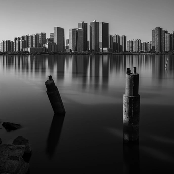 加装海大17档减光镜,后期直接转黑白,加强明暗对比,处理镜头脏点即可。