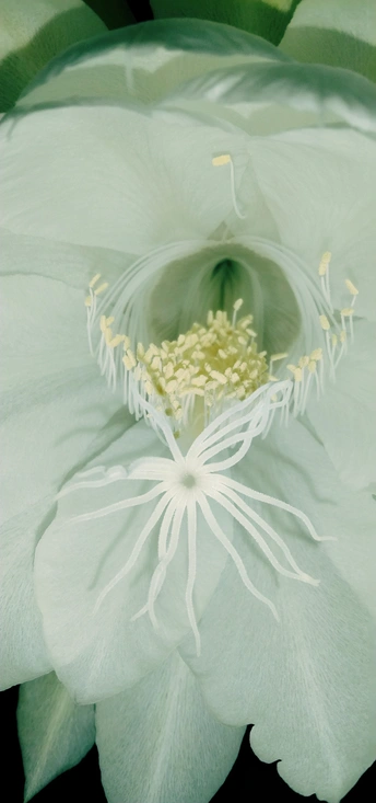 昙花盛开在晚间八点到十点之间,香味扑鼻。没想到冬季阳台温度比较低,也盛开了。