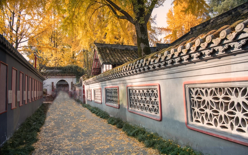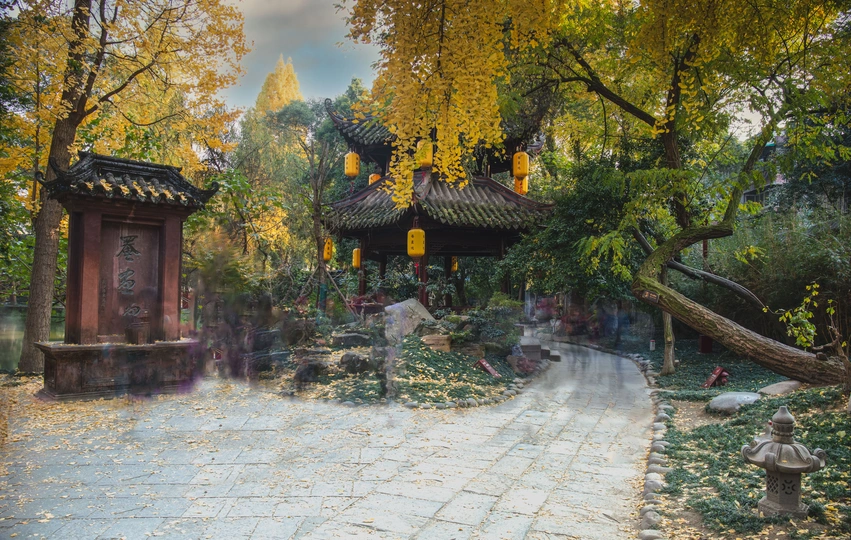 罨画池园林始建于唐朝,由罨画池、陆游祠和州文庙三部分组成,总占地34541平方米,其中水面14600平方米,建筑面积5946平方米,全园格局及建筑保存完好,是中国少数几处保存的唐宋衙署园林之一。
