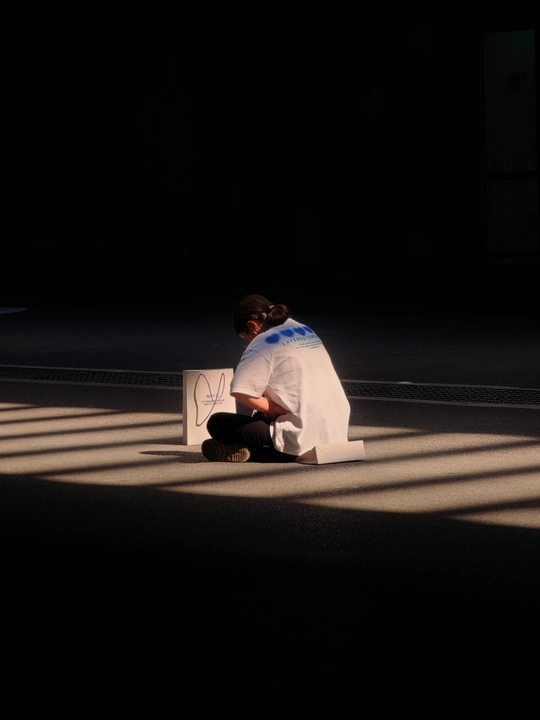 在上海的国家会展中心用手机拍摄到这一幕,我不知道在这条狭长的走道上她为何静坐在人生的“斑马线”上,背后到底有什么故事呢? @米拍社长 @米拍 @米拍摄影学院