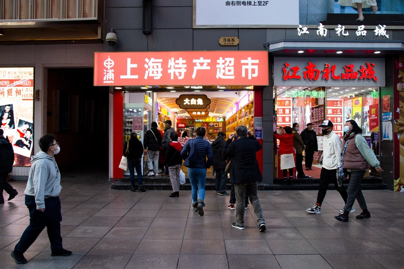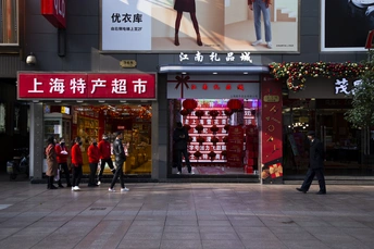 分别拍摄于2021年,2020年2月南京路一家上海特产超市。