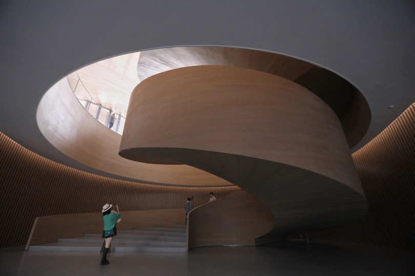 真正的建筑之美,是如水一样流淌的,每一次的驻足,在光与影,线条与形状中,呈现不一样的美。天府艺术公园的展馆,让我看到了充满未来与设计感的成都。