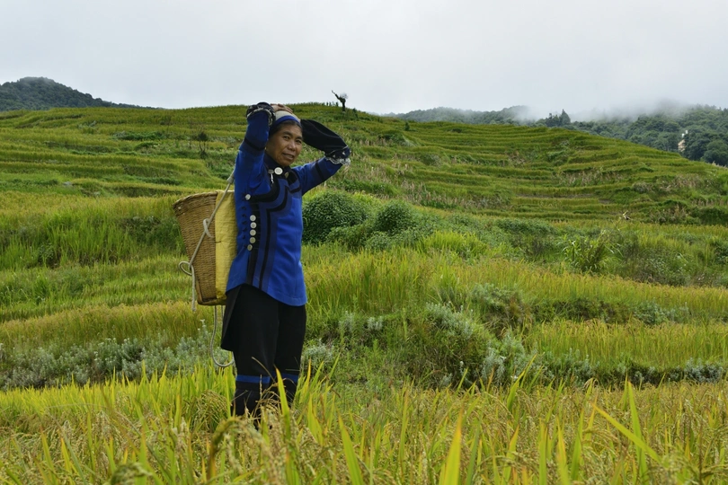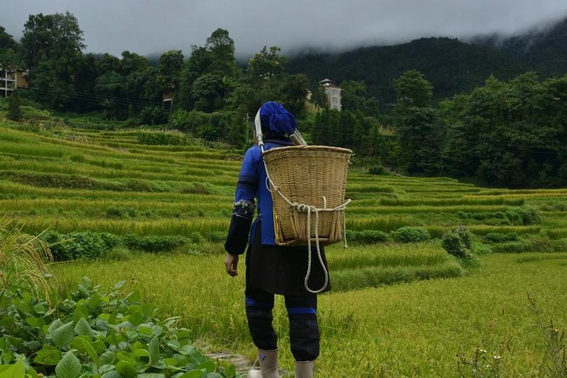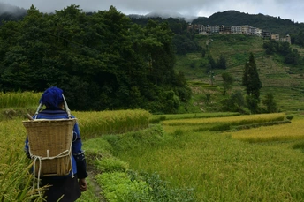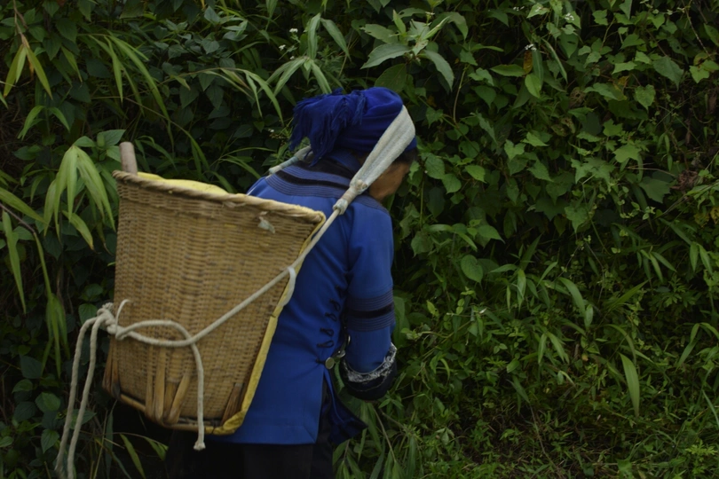 来到世界遗产地.元阳哈尼梯田,遇到哈尼村寨的哈尼人,她身穿哈尼人特有的服饰,背着特有的箩筐,正在回家的路上,我把她记录了下来,这个世世代代生活在梯田美景里的哈尼人民,以梯田产出的经济作物为生活的口粮,背靠森林,面向梯田,利用生态气候的变化,和谐的生活在半山腰。