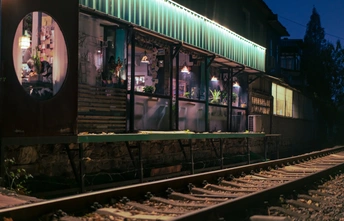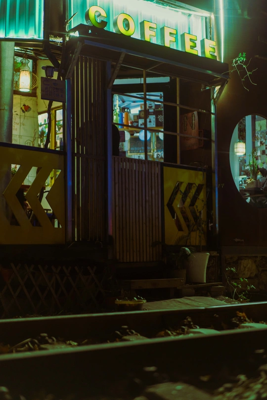 铁道旁的咖啡店,夜晚又是一个不一样的世界