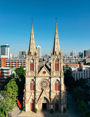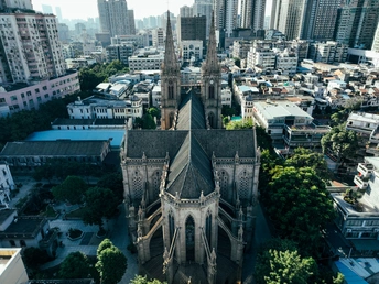 拍摄广州人心中的石室教堂 石室圣心大教堂,位于广州市越秀区一德路。圣心大教堂于1863年6月18日圣心瞻礼日正式举行奠基典礼,故命名圣心大教堂。历时25年始建成,是天主教广州教区最宏伟、最具有特色的一间大教堂。石室圣心大教堂由法国设计师设计,中国工匠建造而成。 如果你来广州玩,这里值得来打卡一趟。 温馨提示: 疫情期间遗憾不对外开放,周日做礼拜只开放给内部的教会成员。 器材:大疆御3 索尼a7m4+索尼1635gm +索尼70-200gm二代+索尼 1.4倍增倍镜 #广州拍照 #广州景点 #航拍广州 #航拍 #圣心大教堂 @米拍 @米拍社长