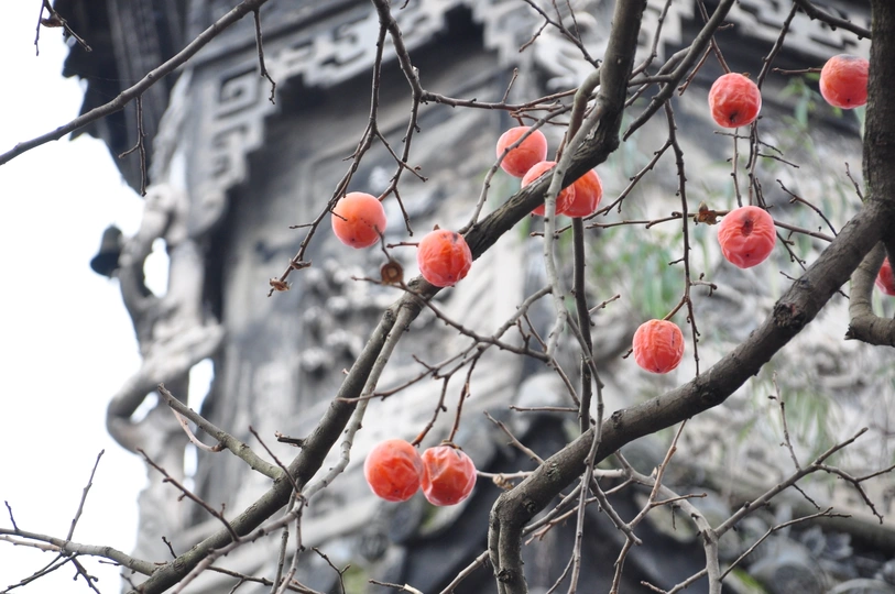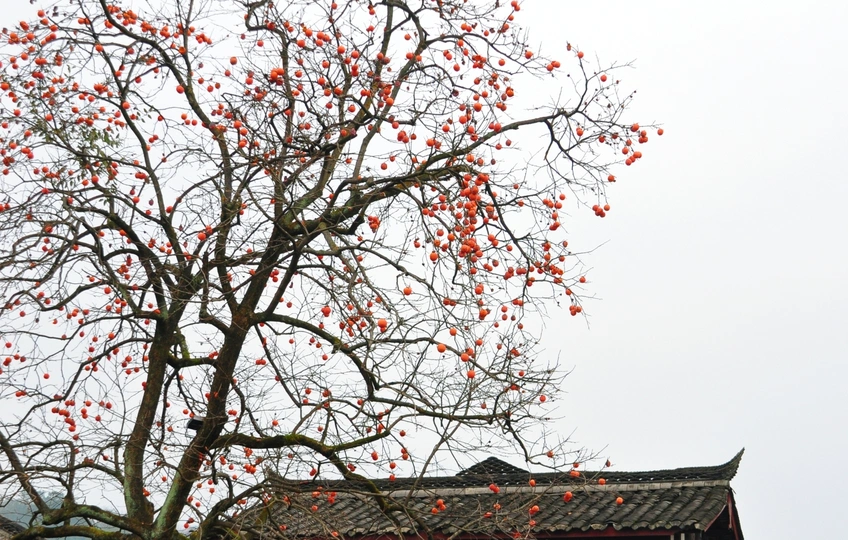 街子古镇有棵巨大的柿子树,又是一年柿子红了!