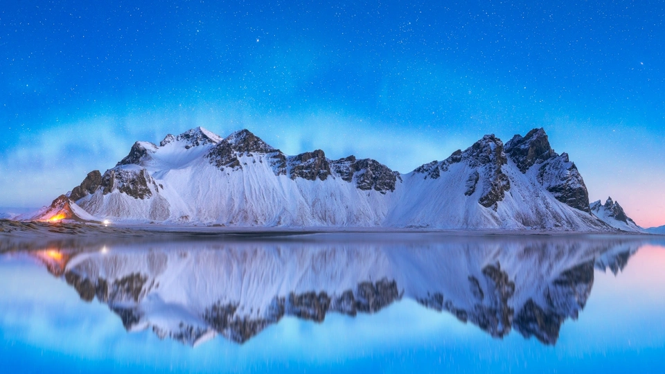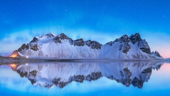 雪山极光倒影