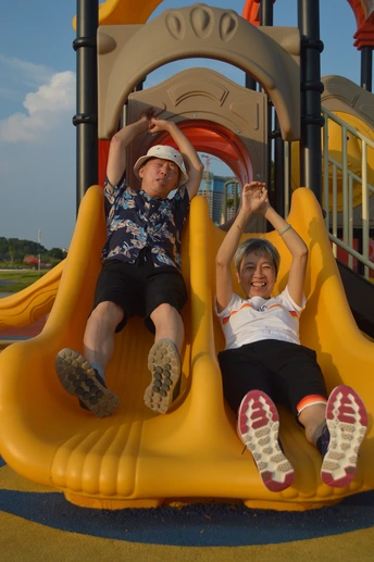 26岁生日那天,是国庆节假期。本来爸妈说要不那天跟我出去转转吧,最后却成了我陪爸妈去公园做运动,他们来到公园的游乐区,突然变得像孩子一样开心地玩了起来。我觉得这样的时光特别难得,于是拍了下来,此刻我们好像除了年龄,其它什么都没变。