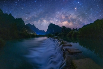 广西的山加上溪流的水,配上天上的星辰,一切是如此和谐梦幻。