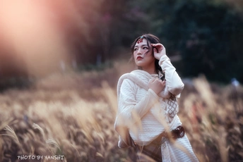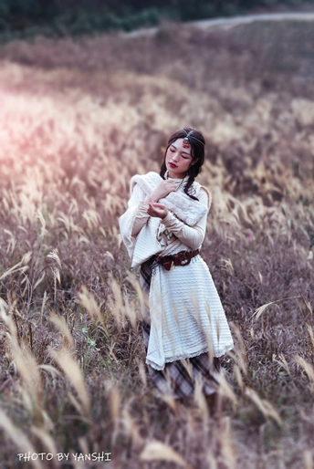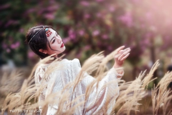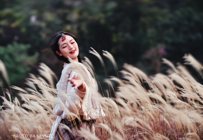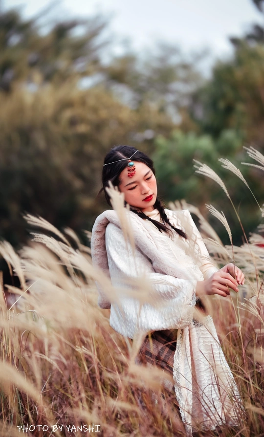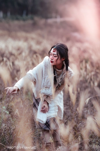 一个晴天微风的日子,身穿藏族服装的美女,随着狗尾草的摇摆,演绎着她那动人的舞蹈美姿😍