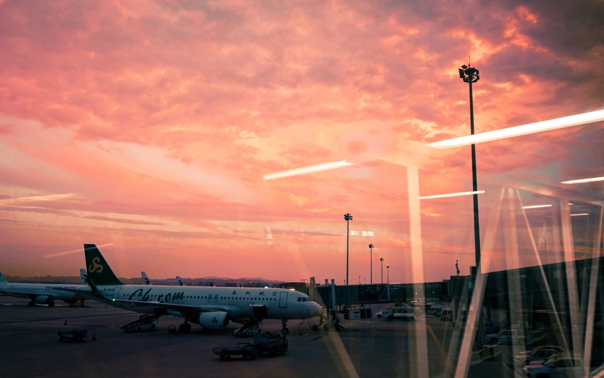回家的飞机落地前一刻 家乡绝美的夕阳迎接