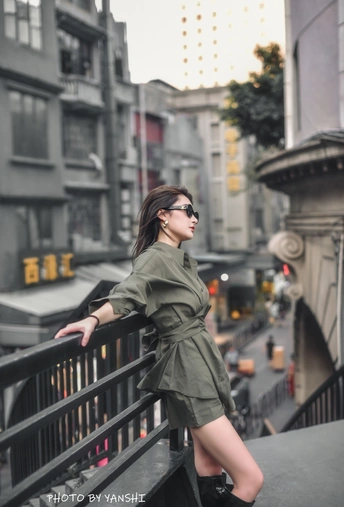 人行天桥也可以拍出不一样的味道,特别是在老街,老建筑与时尚的融合!
