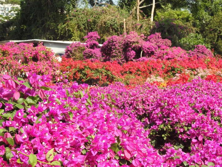 莲花山公园每年都有簕杜鹃花展,有很多游客来拍照。 经过苗圃的时候发现了一大片的花海