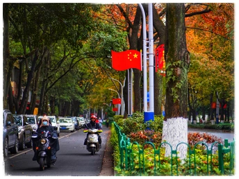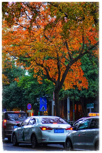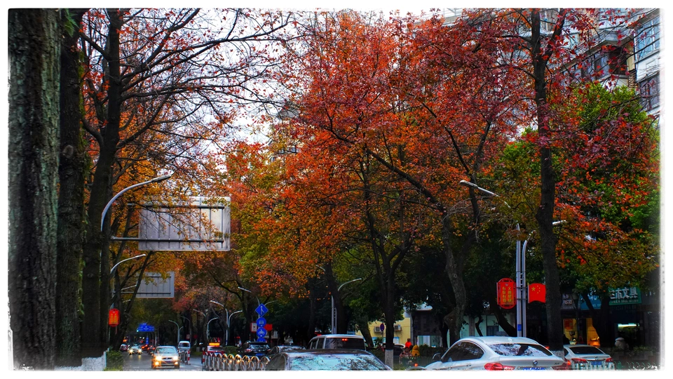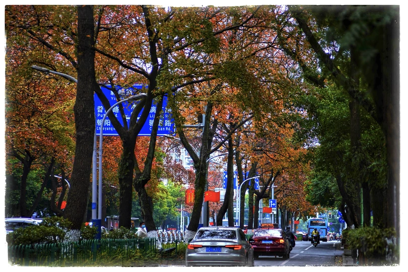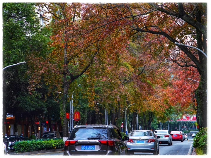 桂林有条网红路,地处漓江东岸,叫七星路,每年深秋和初冬时分色彩斑斓,绚丽夺目,尤其天气晴好时,更是风光旖旎。适合大家去打卡。