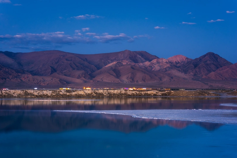 拍摄于大柴旦翡翠湖日落后的蓝调时刻
