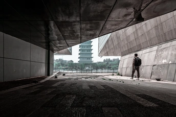 位于世博园珍宝馆,不一样的视角感受长安塔的魅力。 器材:索尼a7r3+1224gm